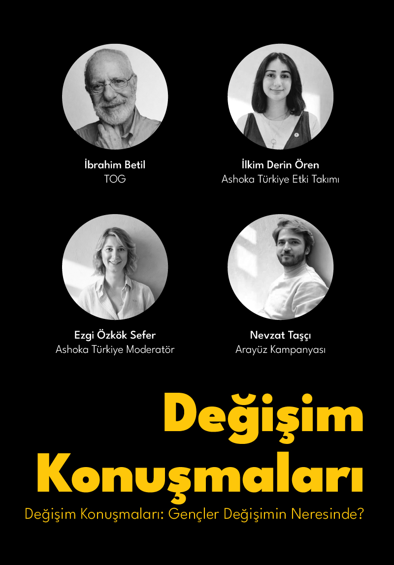 Gençlerin toplumsal sorunlara getirdiği çözümlerden karar alma süreçlerine katılımına kadar farklı başlıkları hep birlikte konuşacağımız bu buluşmada, Ashoka Türkiye Ülke Direktörü Ezgi Özkök Sefer'in moderatörlüğünde; Ashoka Fellow'u ve TOG'un kurucusu İbrahim Betil, Ashoka Türkiye Etki Takımı üyesi İlkim Derin Ören, Ashoka Fellow’u ve Arayüz Kampanyası'nın kurucusu Nevzat Taşçı olacak.
